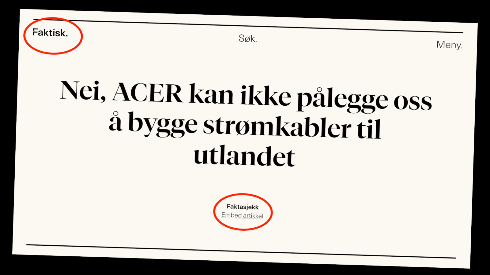 I en såkalt faktasjekk av en uttalelse fra Sandra Borch (Sp), er overskriften svært så entydig: «Nei, ACER kan ikke pålegge oss å bygge strømkabler til utlandet.»