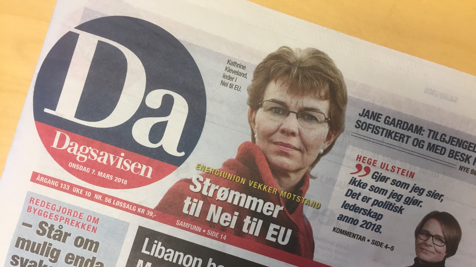 Stort bilde i toppen: Dagsavisen 7. mars 2018