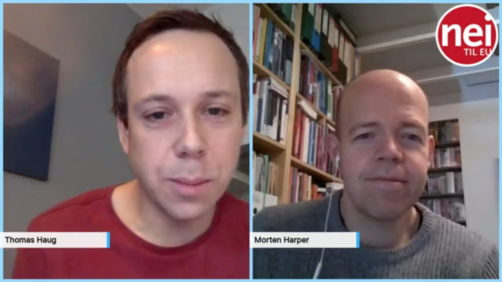 Generalsekretær Thomas Haug og utredningsleder Morten Harper i Nei til EU presenterer webinar-serien.