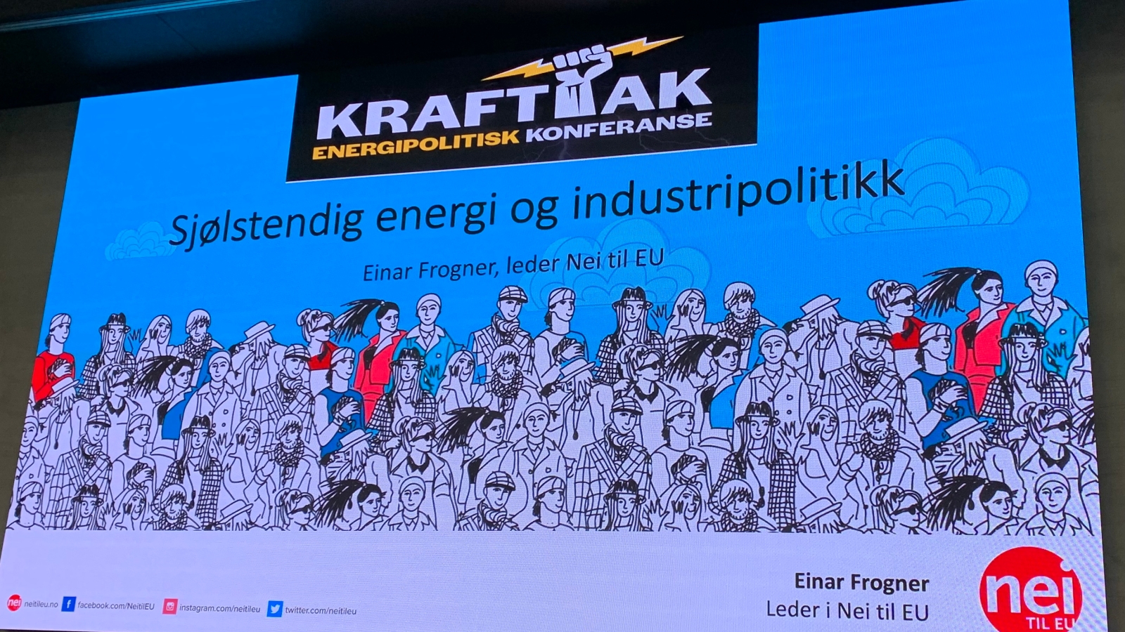 – Nei til EU tapte saken i Høyesterett. Dommen peker på at kampen om krafta er et politisk spørsmål, sa lederen av Nei til EU, Einar Frogner. – Ja vel, da får vi adressere at det er politikk å sikre kontroll over krafta, slo en engasjert Frogner fast.