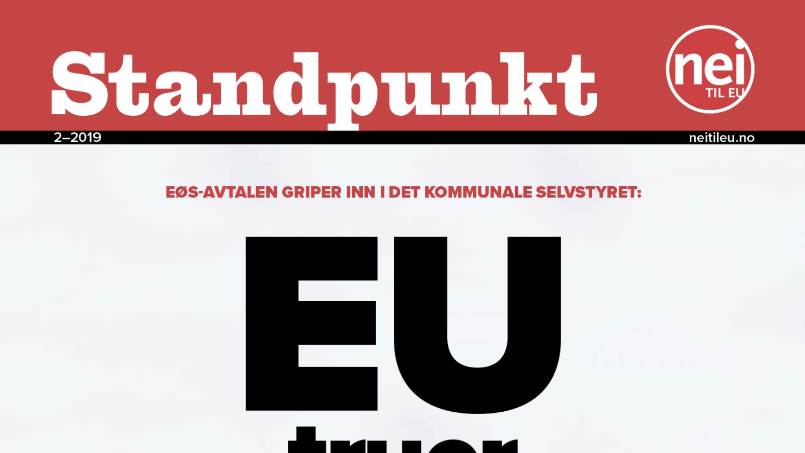 I dette nummeret av Standpunkt kan du lese om at EØS-avtalen griper inn i det kommunale selvstyret. Og Nei til EU feirer at det er 25 år siden folkeavstemningen i 1994.