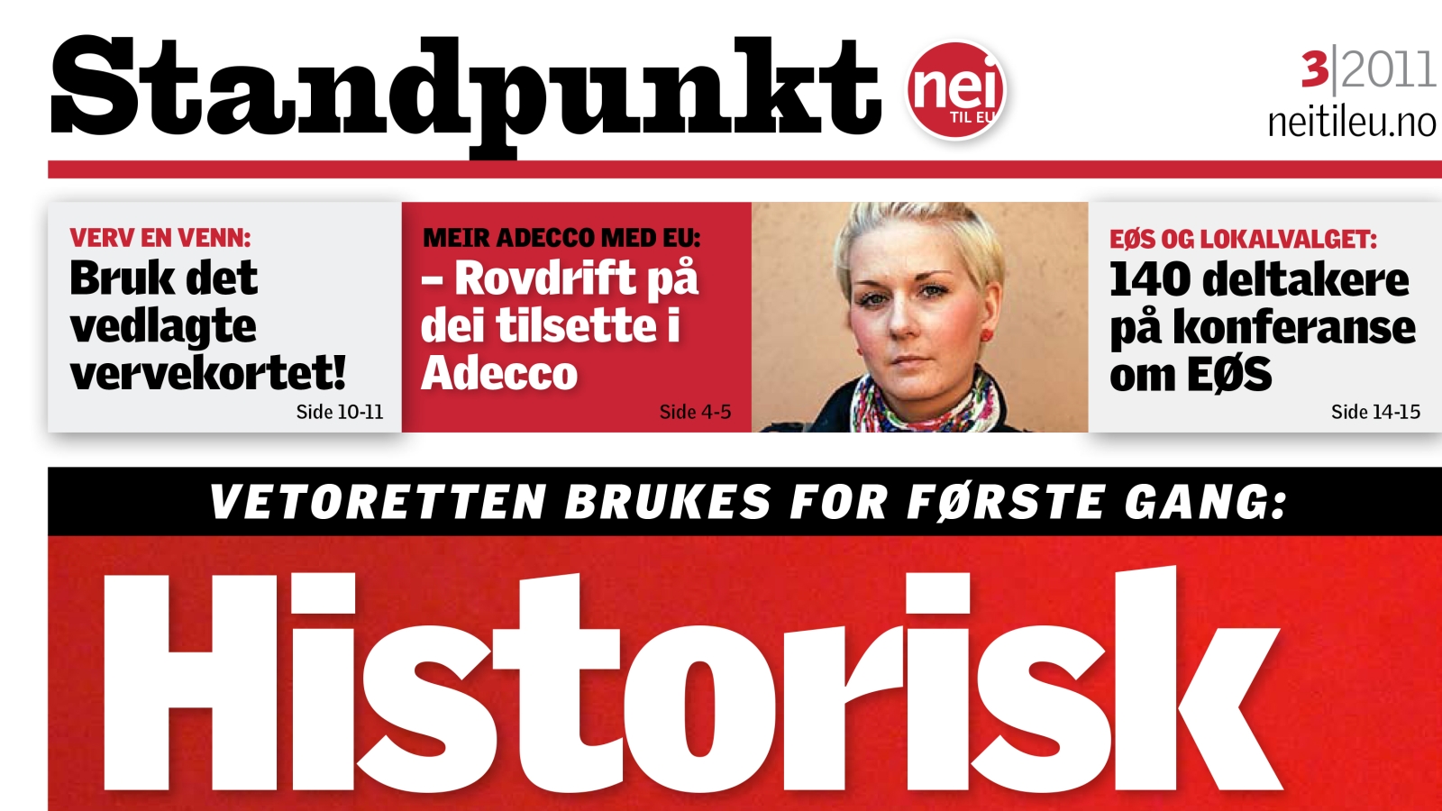 I mainummeret av Standpunkt 2011 kan du bl.a. lese om det utrolige veto-vedtaket i Arbeiderpartiet, Nei til EUs EØS-konferanse og vervekonkurransen.