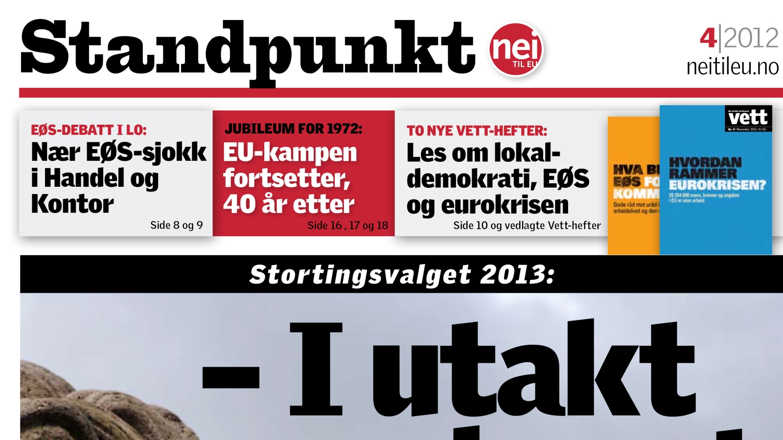 I dette nummeret av Nei til EUs medlemsavis Standpunkt kan du bl.a. lese om: