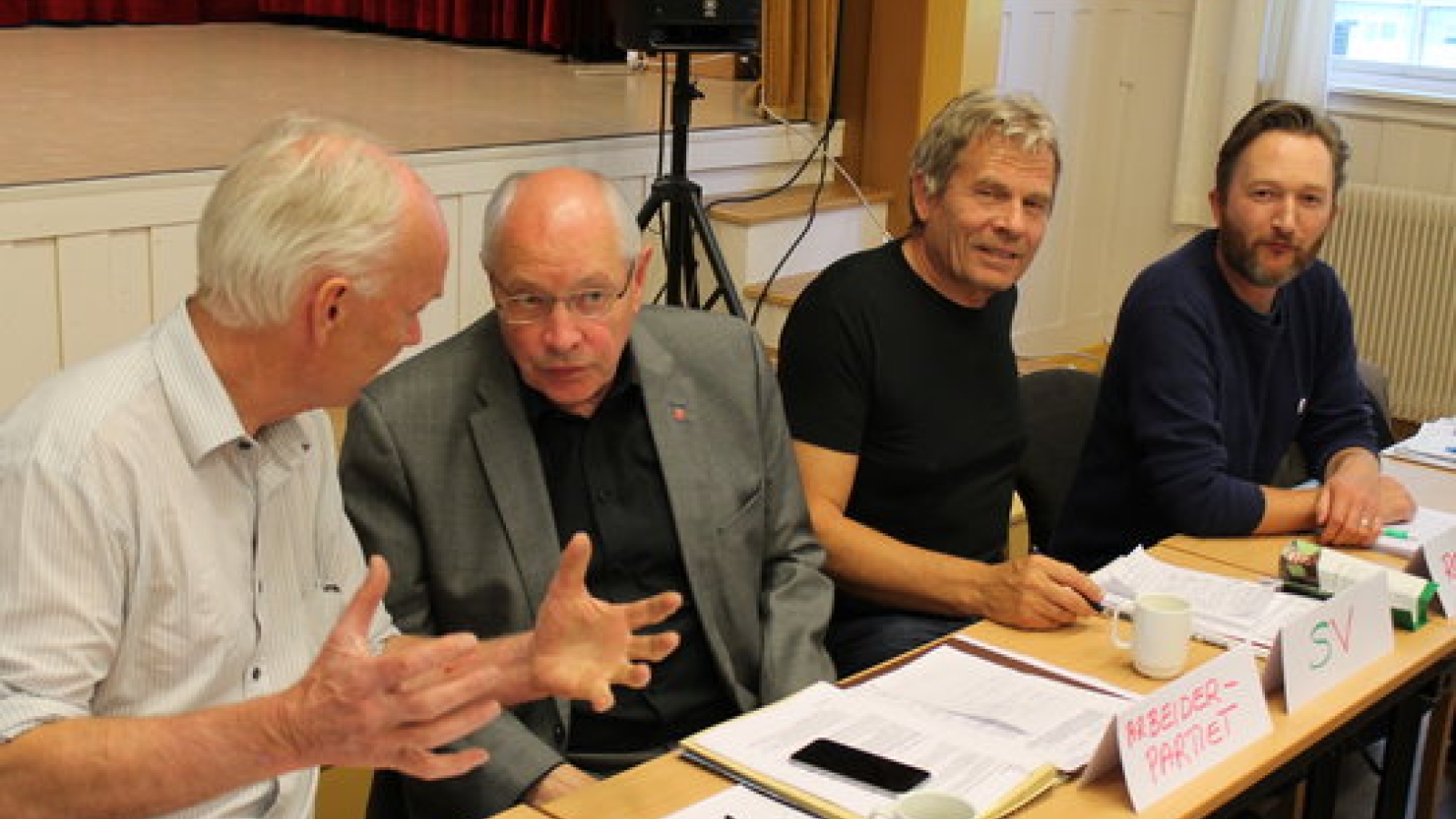 Fv førstekandidatene Per Olaf Lundteigen (Sp), Martin Kolberg (Ap), Arne Nævra (SV), Jørgen Harboe Wilhelmsen (Rødt).