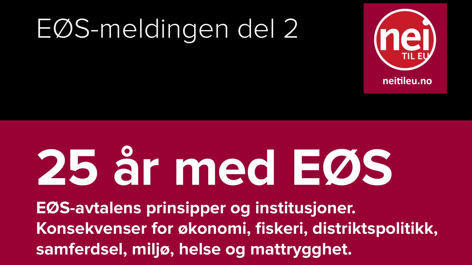 25 år med EØS – EØS-avtalens prinsipper og institusjoner. Konsekvenser for økonomi, fiskeri, distriktspolitikk, samferdsel, miljø, helse og matsikkerhet.