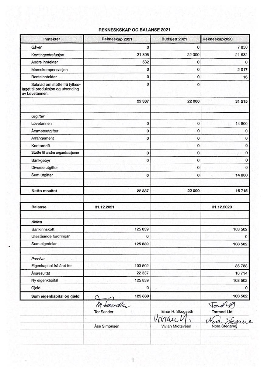 - Sak 4: Regnskap, balanse og revisjonsmelding 2021