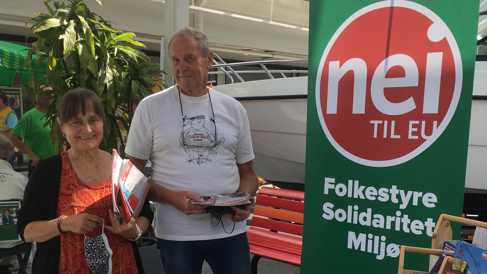 Alver Nei til EU opna valkampen 2021 med stand i Knarvik Senter, 14. august. 3 frå styret deltok: leiar Arnulf Hjelmtveit, nestleiar og sekretær Jane Nordlund (sjå bilete), og styremedlem Toril Mongstad. Det vart delt ut Standpunkt og anna materiell. I senteret er det sett av plass til stand for politiske parti, Alver NtEU har og fått løyve til å stå i det same området. Ikkje heilt optimalt, det er trongt om plassen, og publikum kan lett oppfatta det påtrengjande å verta snakka til av så mange når dei passerer i området. Men dette skal ikkje hindra oss i å stå på stand fleire gonger, me møter opp laurdag om ei veke, og har i tillegg planar om å stå på stand på Lindås senter samt å vitja vidaregåande skular.