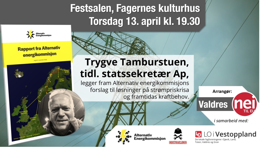 Arrangører for møtet er Valdres Nei til EU, LO i Vestoppland, Alternativ Energikommisjon og Industriaksjonen.