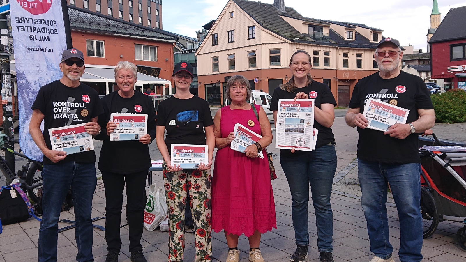 Men denne gangen kolliderte Husøydagan med sykkelrittet Arctic Race of Norway, med veistenginger og store logistikkproblemer som følge. Derfor ble styremøtet flyttet til Tromsø, med stand på Strandtorget i stedet. Der ble Troms-utgaven av Nei til EUs valgkampavis delt ut. Avisen har blant annet presentasjon av hvilke holdninger stortingskandidatene i Troms har i viktige EU-spørsmål. Bruk denne lenken: bit.ly/4ejDf56 for å laste ned valgavisen i PDF-format.
