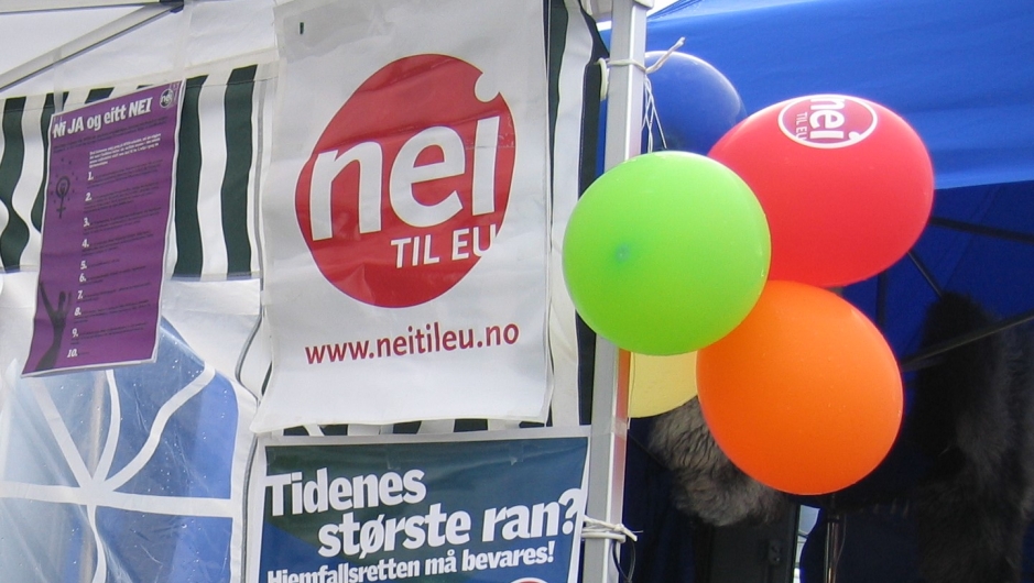 Vestfold Nei til EU har stand på Holmestrandfjellet ved nedgangen til Holmestrands nye jernbanestasjon lørdag 7. juli kl. 11.00 - 14.00.