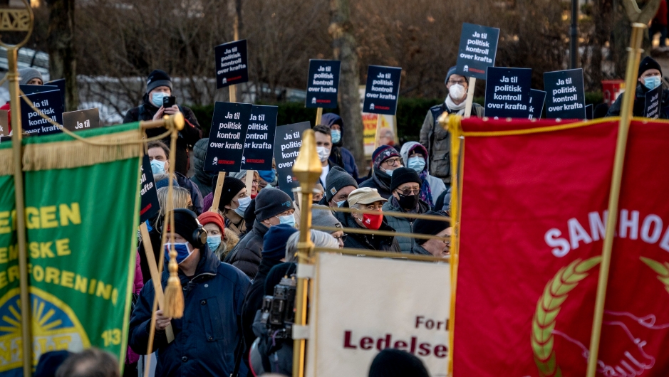 Stort bilde i toppen: Strømprisalliansens fanemarkering foran Stortinget 20. januar 2022. (Foto: Eivind Formoe)